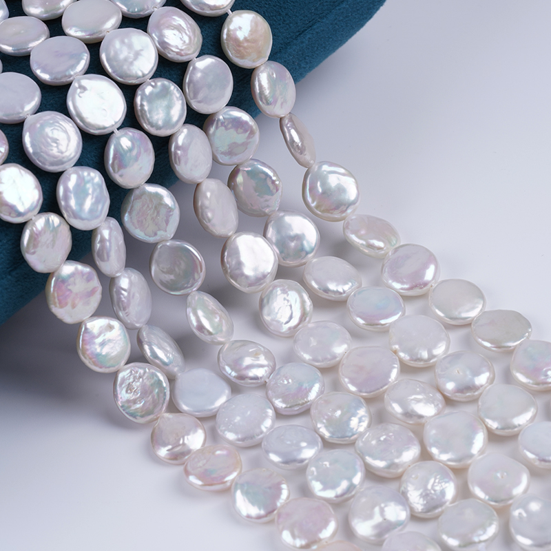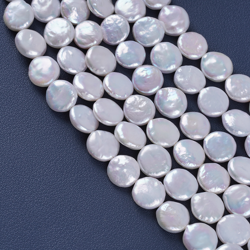 11-12mm Natural White Color Coin Shape Pearl Strand China Factory Wholesale Price