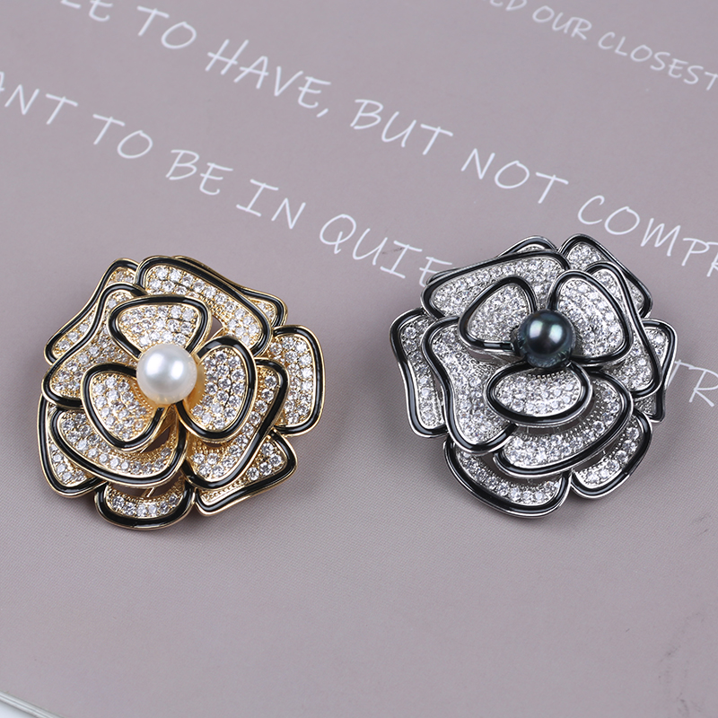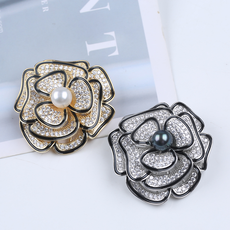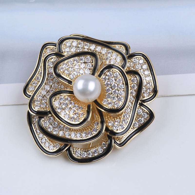 Pearl Brooch Supplier Flower Shape Genuine Pearl Brooch For Gift