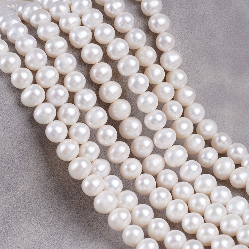 7-8mm Natural White Color Potato Shape Pearl Strand Real Freshwater Pearl