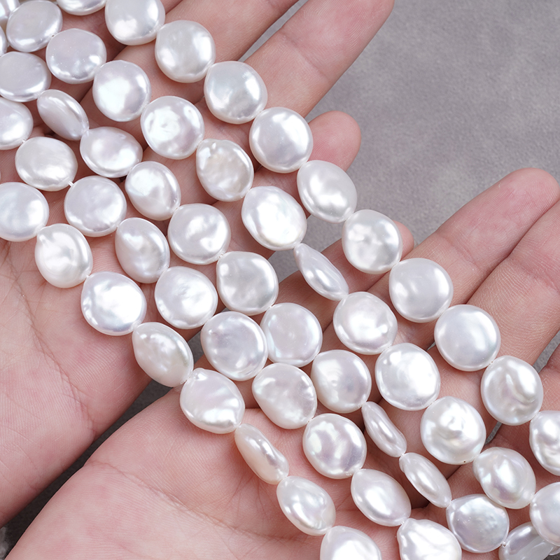 12-13mm Coin Shape Freshwater Pearl Strand China Factory Wholesale Price