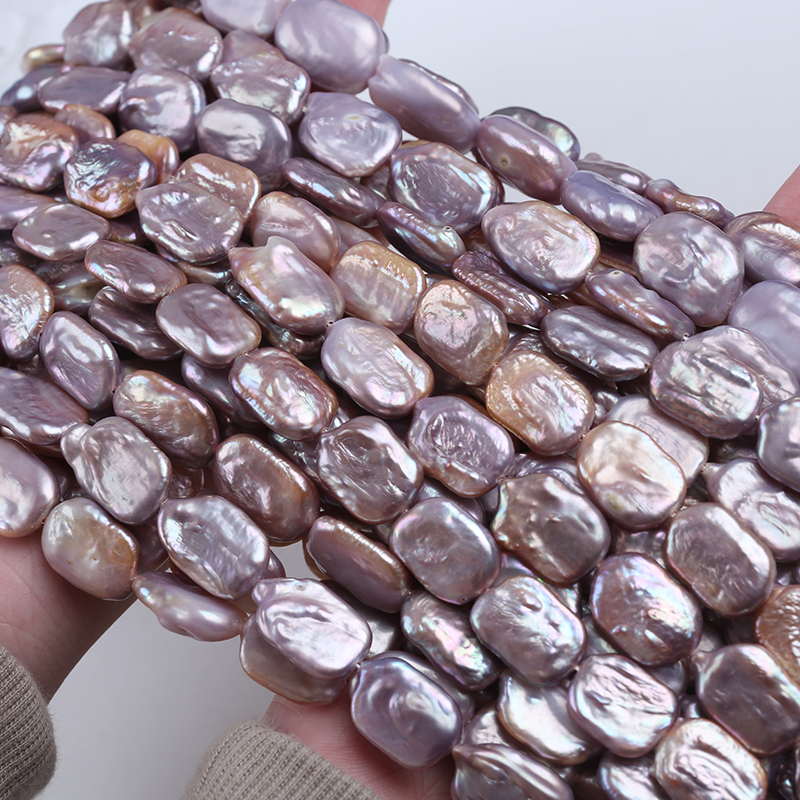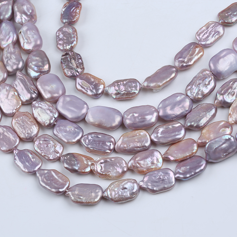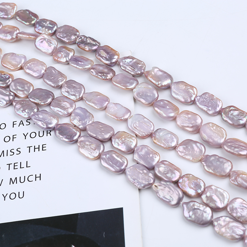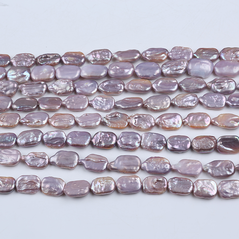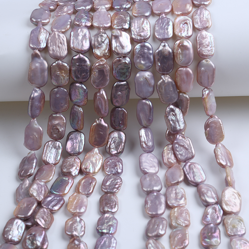 Zhuji Freshwater Pearls Factory 12-14mm Natural Purple Rectangle Pearl Strand