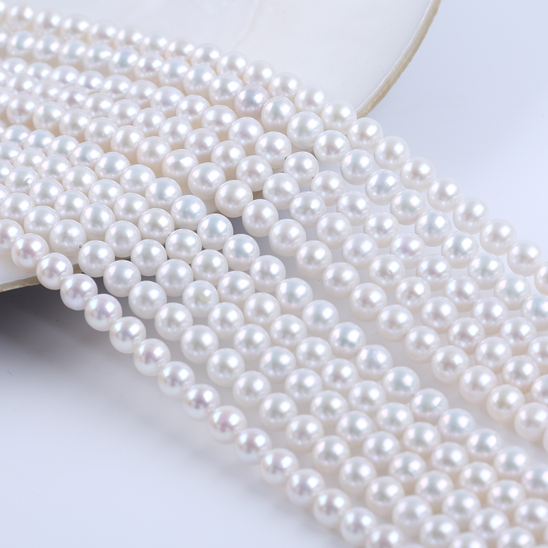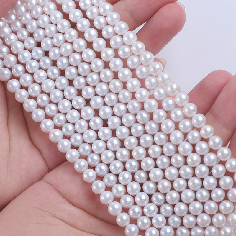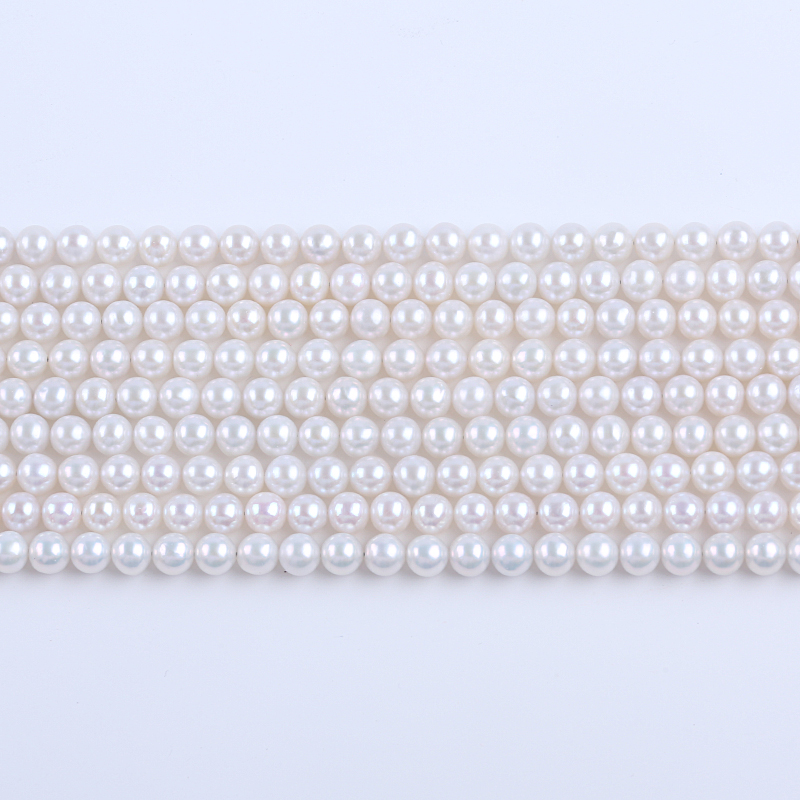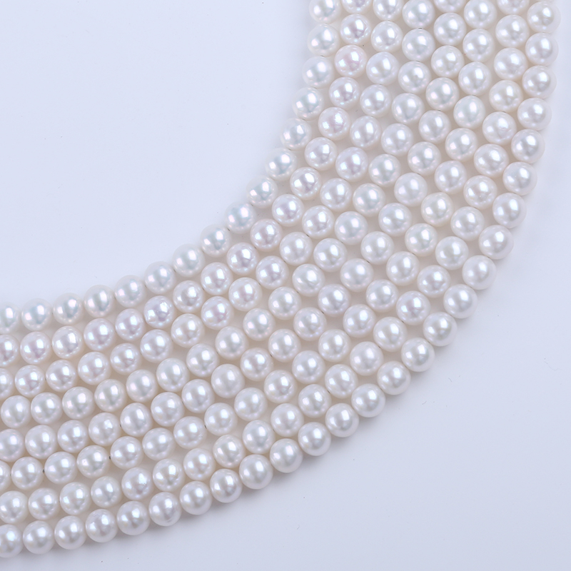 China Pearl Wholesale 6-6.5mm White Round Shape Freshwater Akoya Pearl Strand DK9756