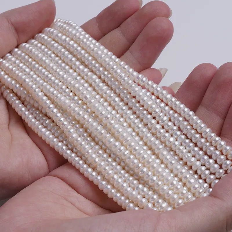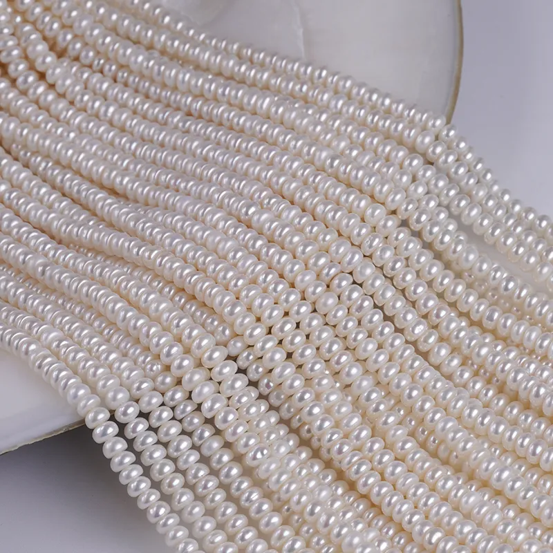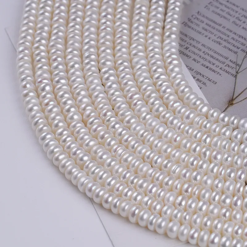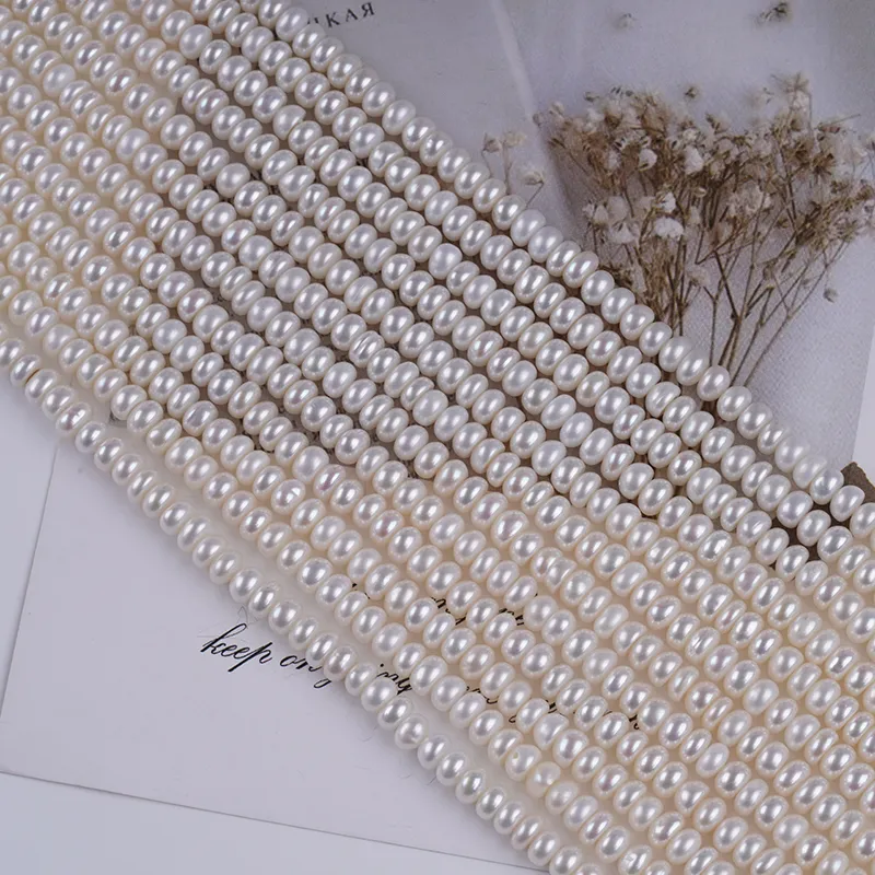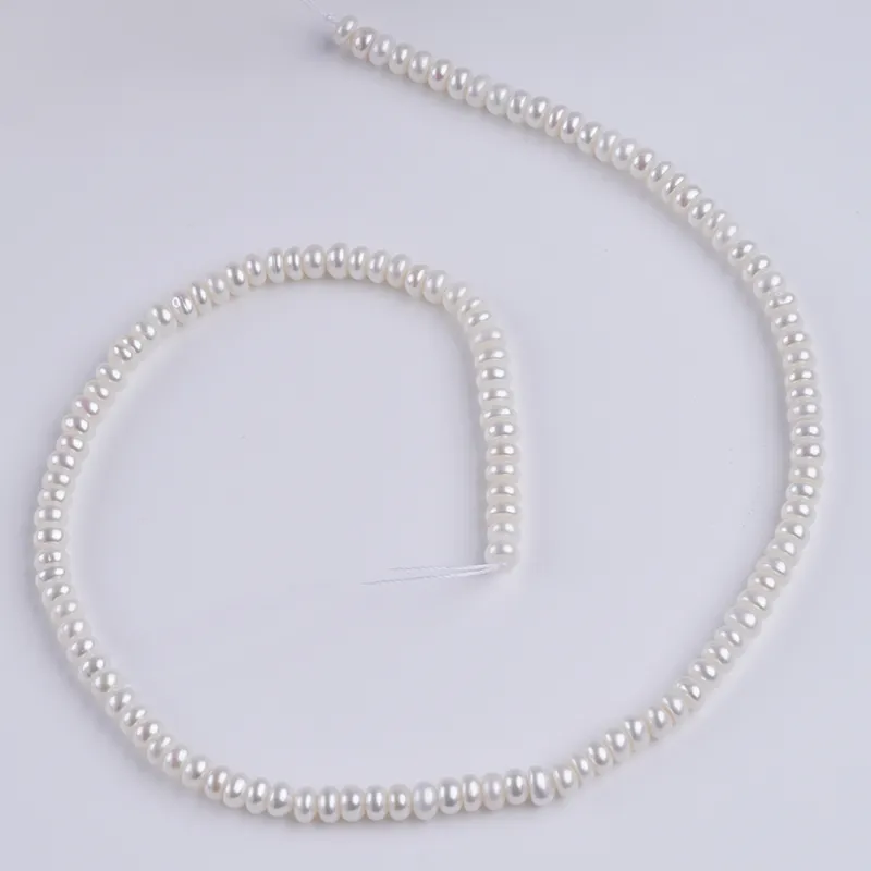 Pearl Strand Factory 4-5mm White Color Button Shape Freshwater Pearl Strand For Jewelry Making DKST9725