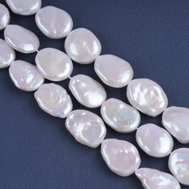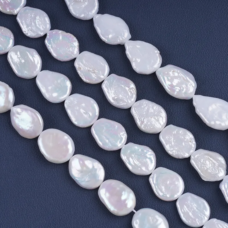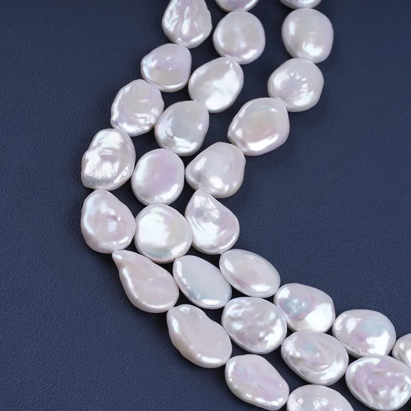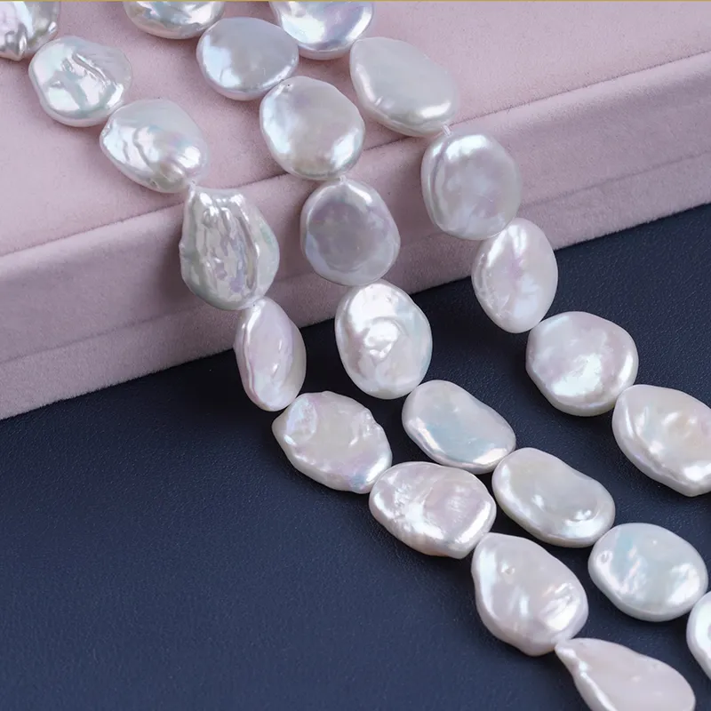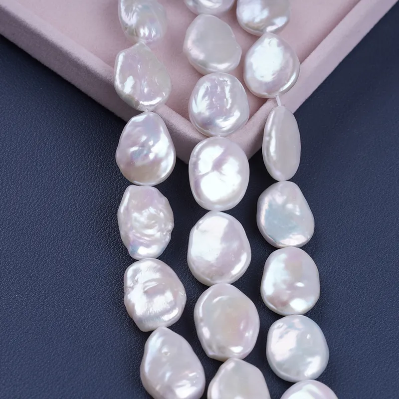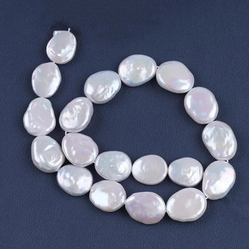 Pearl Strand Wholesale 15-17mm White Color Coin Shape Freshwater Pearl String For Jewelry Making DK9749