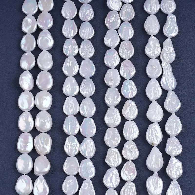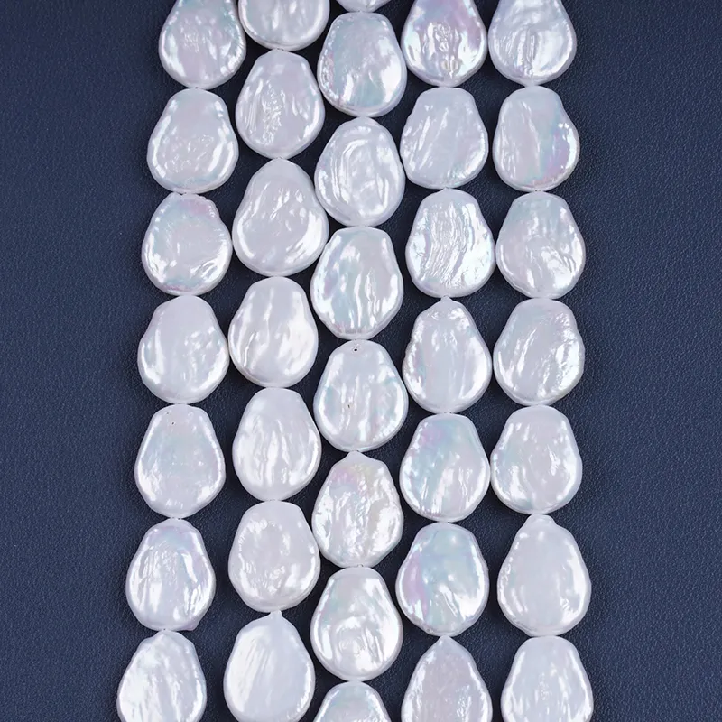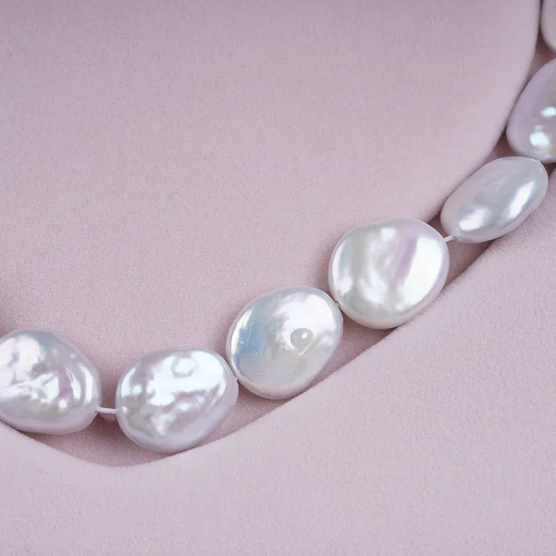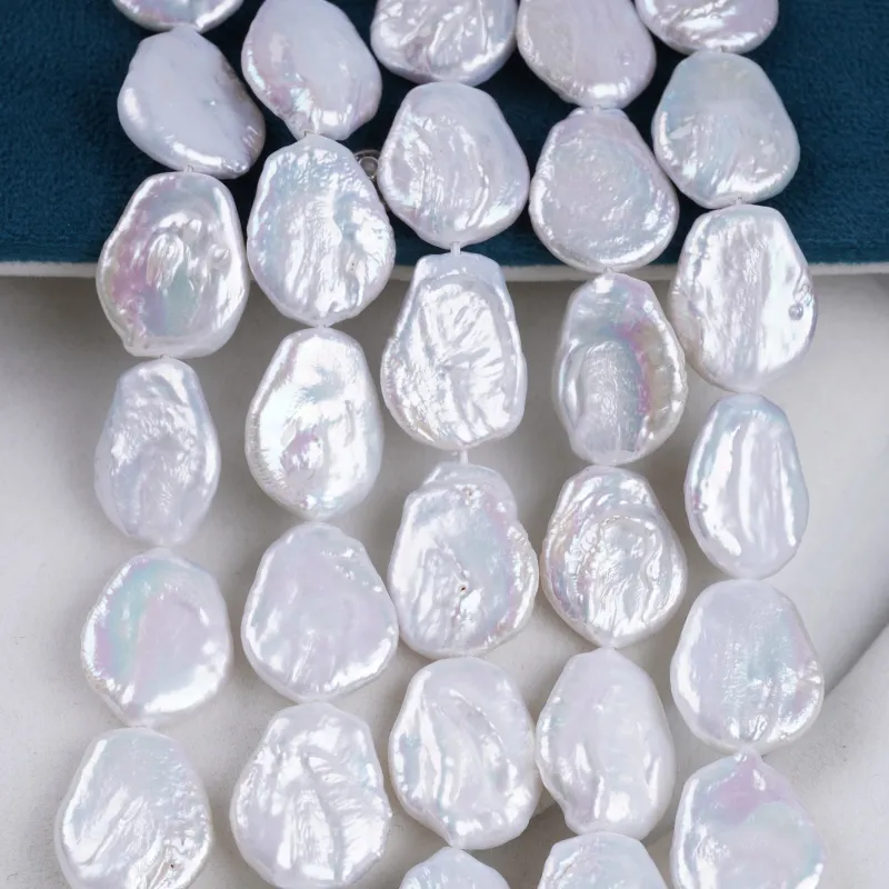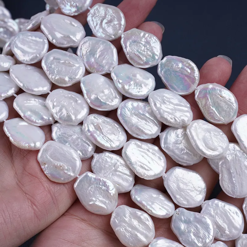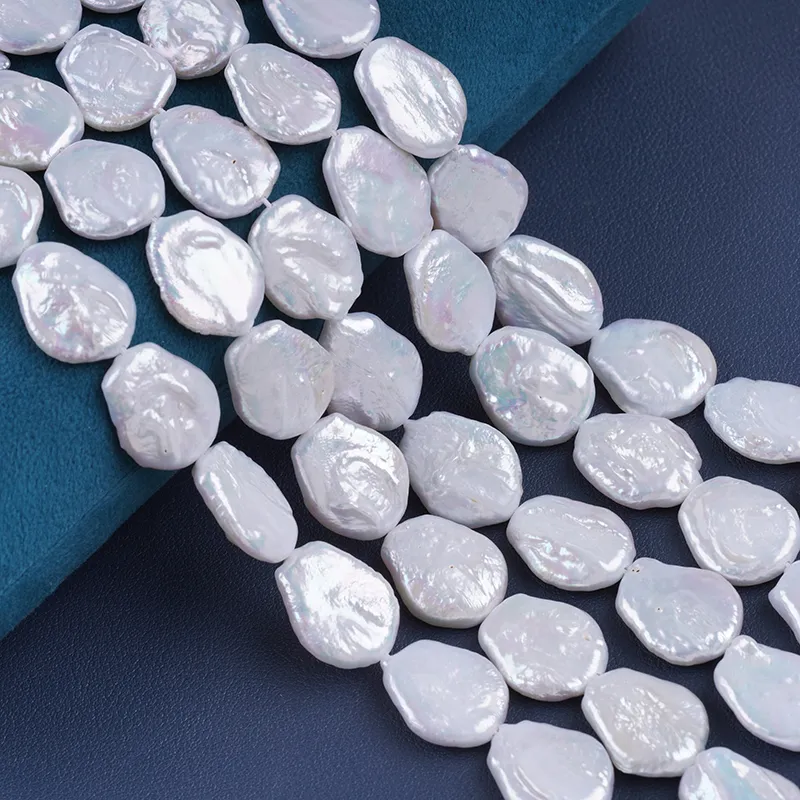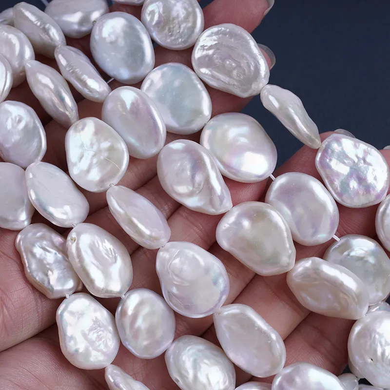 Pearl Strand Wholesale 15-17mm White Color Coin Shape Freshwater Pearl String For Jewelry Making DK9749