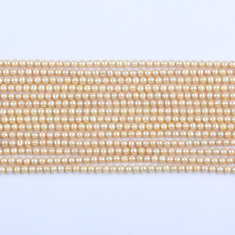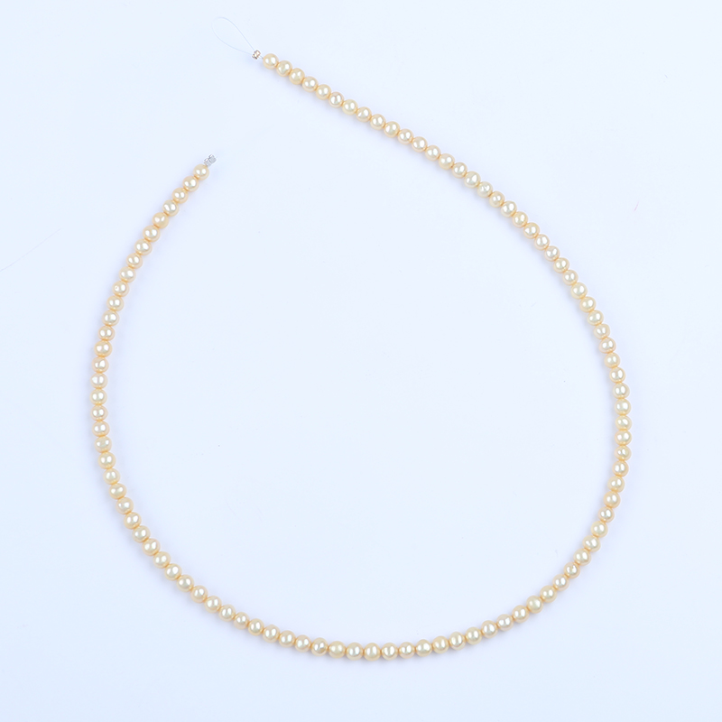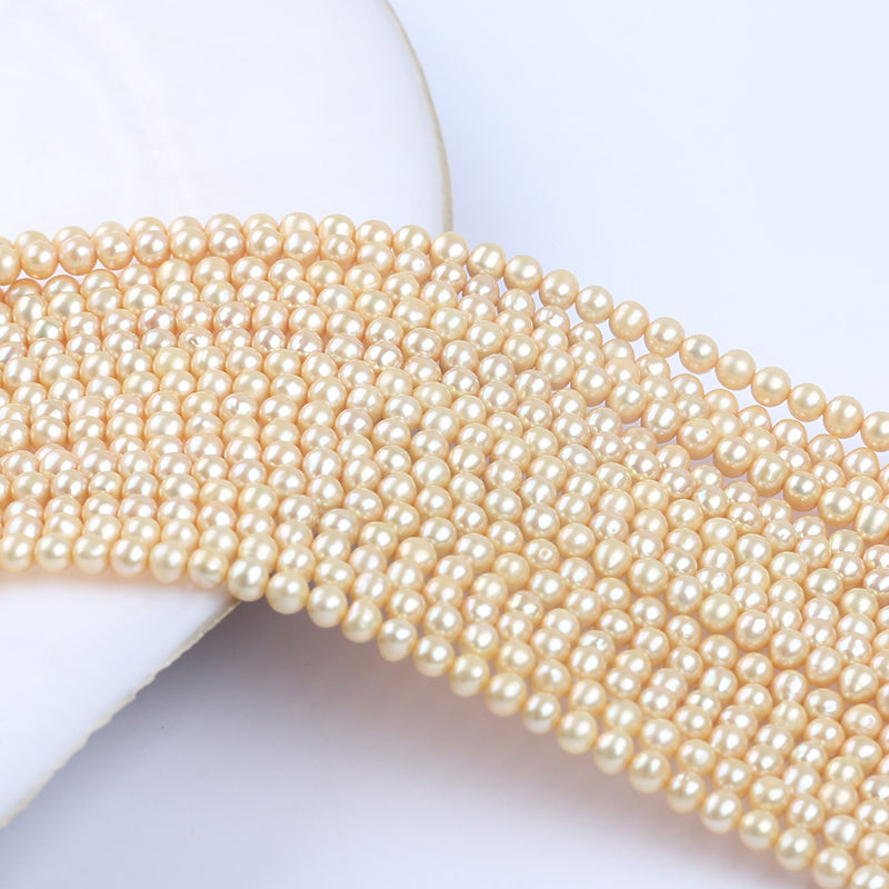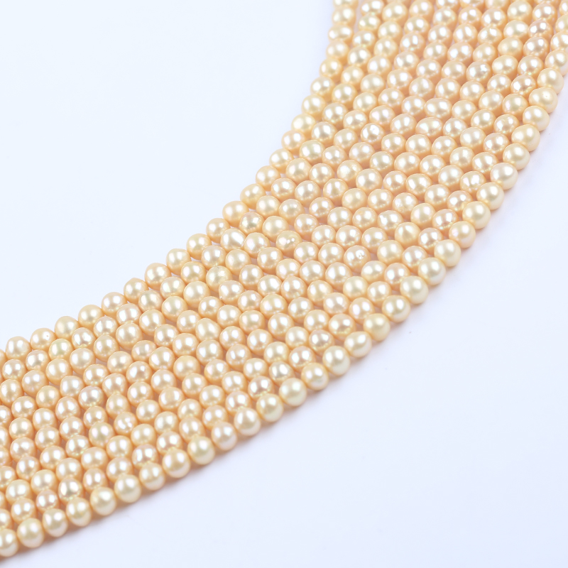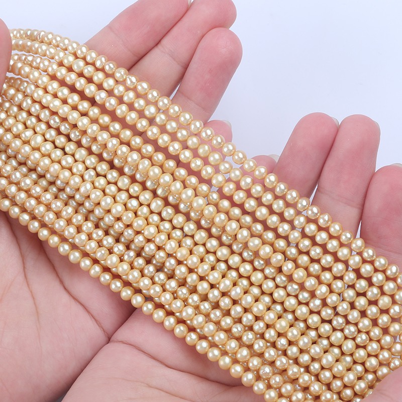 Pearl Strand Wholesale 4-4.5mm Gold Color Round Shape Freshwater Akoya Pearl Strand